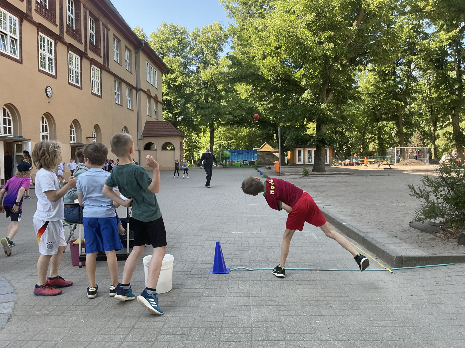 Am vergangenen Freitag, den 13. Juni, fand unser erstes Sportfest des Jahres statt. Der „Unglückstag“ hat uns dabei zum Glück keine negativen Geschehnisse beschert. Bei traumhaften Wetter mit Sonnenschein ging es für die Klassenstufen 3 bis 6 darum, an zehn Stationen ihr Können zu beweisen.