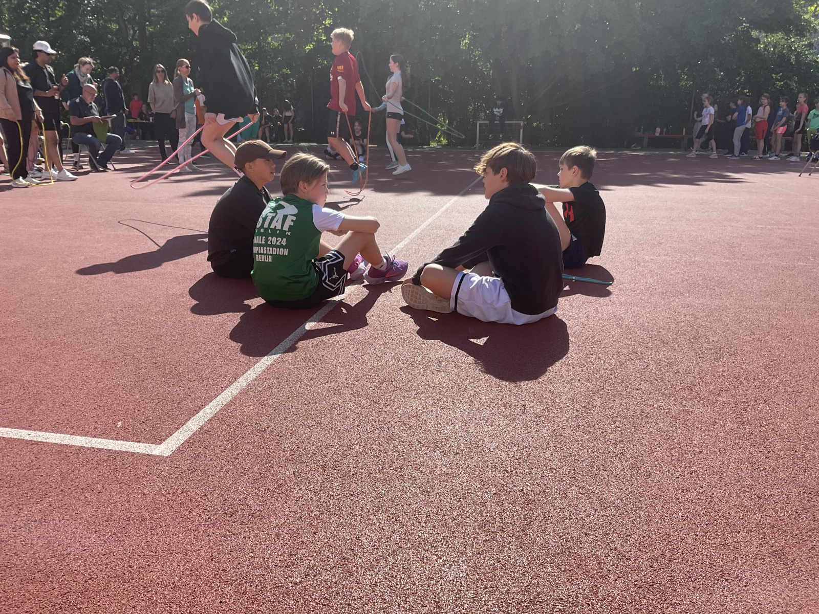 Es wurde dabei nicht nur gesprungen, geworfen und gesprintet. Auch beim Team-Wettbewerb ging es wieder darum, welche Klasse am Besten zusammenarbeiten kann. Denn im Sport geht es nicht immer nur um Einzelleistungen, auch das Mannschaftsgefüge ist manchmal sogar wichtiger. Nach all den Anstrengungen und großartigen Leistungen hatten sich die Schüler*innen am Ende auch ein Stück Pizza verdient.