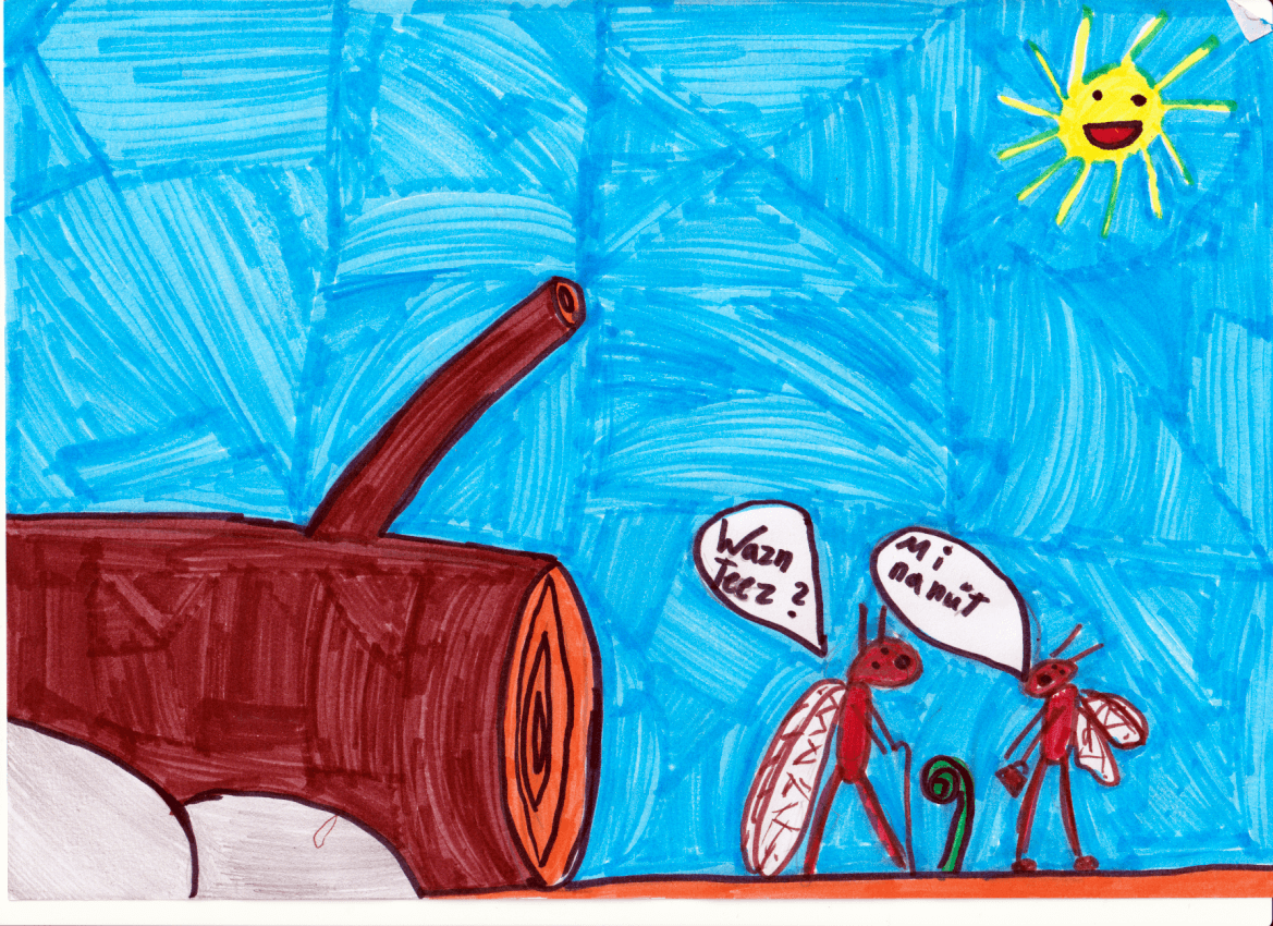 Am Ende, als es Frühling wurde, sah man viele Setzlinge und dann sagten die Insekten wieder „Wazn Teez?“.